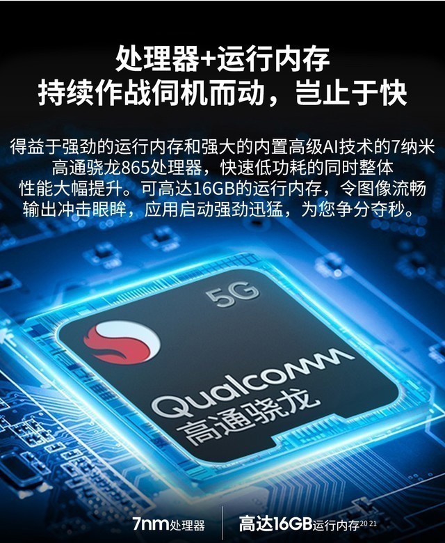三星Galaxy S20 Ultra采用高通骁龙865处理器,搭载新一代Kryo 585核心,主频提升至2.84GHz,性能较前代提升25%,CPU为八核心设计,包括2.84GHz Cortex - A77*1 + 2.42GHz Cortex A77*3 +1.8GHz Cortex-A55*4,全新Adreno 650 GPU性能提升25%,功耗降低35%。