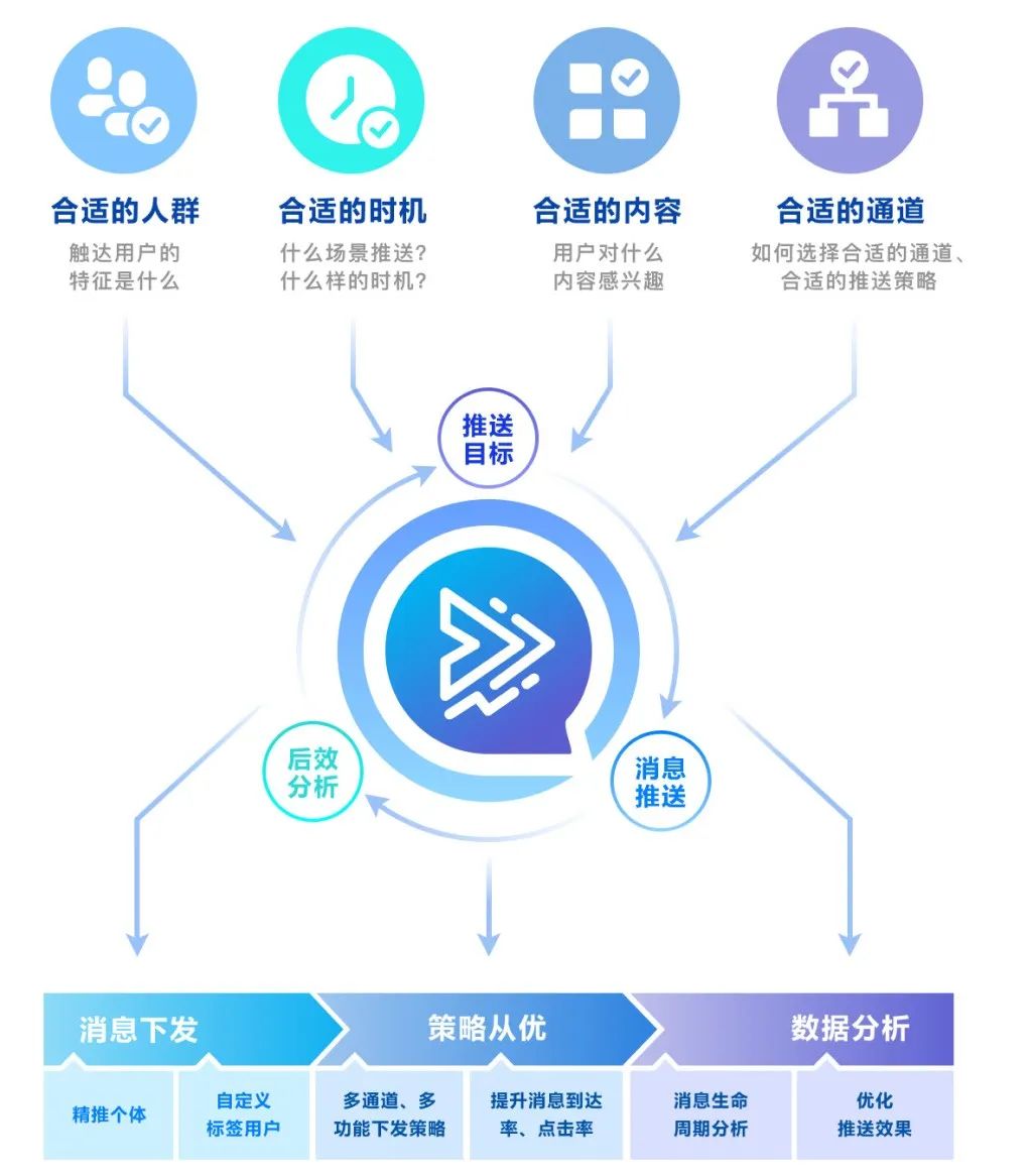 环信PUSH 2.0的核心价值在于帮助APP在对合适的人群,在合适的时机,以合适的方式,发送合适的内容,实现推送效果最大化。